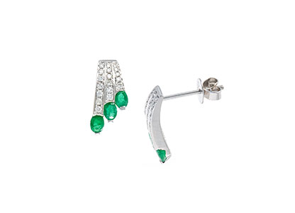 Be noticed with these stunning earrings, crafted into three 18ct white gold graduating bars, encrusted with diamonds and accentuated with three oval emeralds.  This breath – taking design has an unusual elegance that will turn heads with admiring glances. We are sure these earrings will become a long term favourite to your collection.
