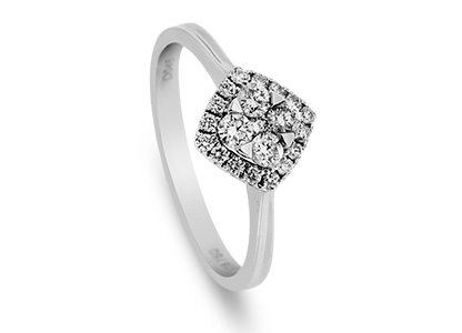 This stunning diamond ring, which is crafted in 18ct white gold using the finest materials and methods of jewellery making skills, is set with twenty-one round brilliant cut diamonds that have been specially chosen for their exceptional sparkle and fire, and claw set into a two-tier cushion shaped cluster that captures light from every angle.