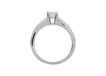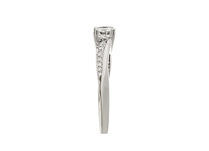 The 18ct. white gold showcases a row of graduated round brilliant cut diamonds filled with fire and sparkle cascading in a wave down its shoulders, elevating the sparkle of the centre diamond even further.