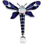 This stunning dragonfly brooch is finely crafted to the highest standard from real sterling silver and is set with marcasite stones to the eyes and inlaid royal blue enamel giving a beautiful luminescent glow shimmering opals have been used on the wings and body, and a pearl is attached to the tail. Designed and made in the UK producing a premium finish. A gift that will be treasured that she will want to wear again and again.