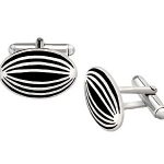 Oval shaped cufflinks, slightly domed and inlaid with black enamel, made in 925 real sterling silver with a polished anti tarnish rhodium finish.