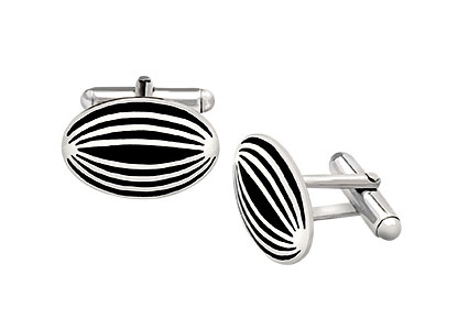 These classic oval shaped cufflinks, slightly domed and inlaid with black cloisonné enamel evokes the style of todays modern city gent.