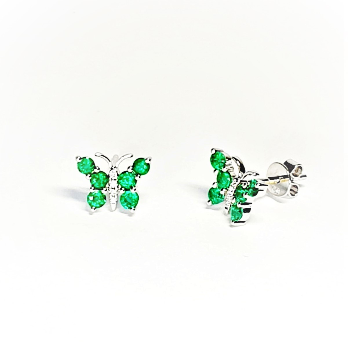 City of London Jewellers presents the Ballycastle emerald butterfly stud earrings.
