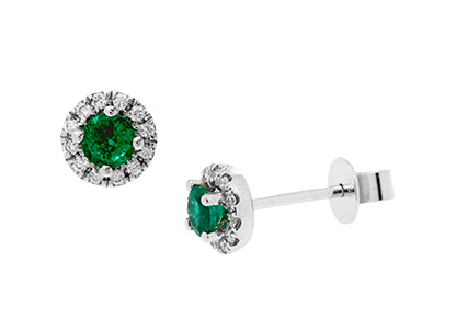 Delightful luxurious feminine style, these 18ct white gold emerald and diamond round cluster stud earrings are the ultimate in pretty accessorising, set with a single rich emerald green emerald encircled with round brilliant cut sparkling white diamonds. Perfect for adding a subtle finishing touch of colour to your look and make you feel wonderful.