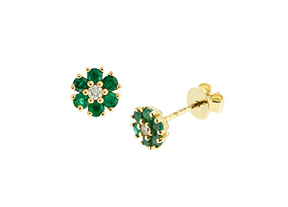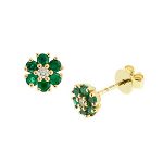 City of London Jewellers Present 18ct yellow Gold Emerald and Diamond Round Cluster flower Stud Earrings ESA00446
