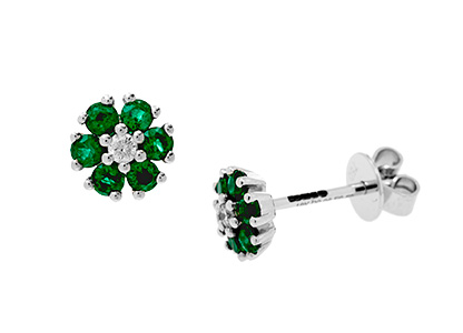 City of London Jewellers Present 18ct White Gold Emerald and Diamond Round Cluster flower Stud Earrings ESA00441