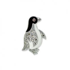 City of London Jewellers presents the Luton Real Sterling Silver Marcasite and Enamel Penguin Brooch.
