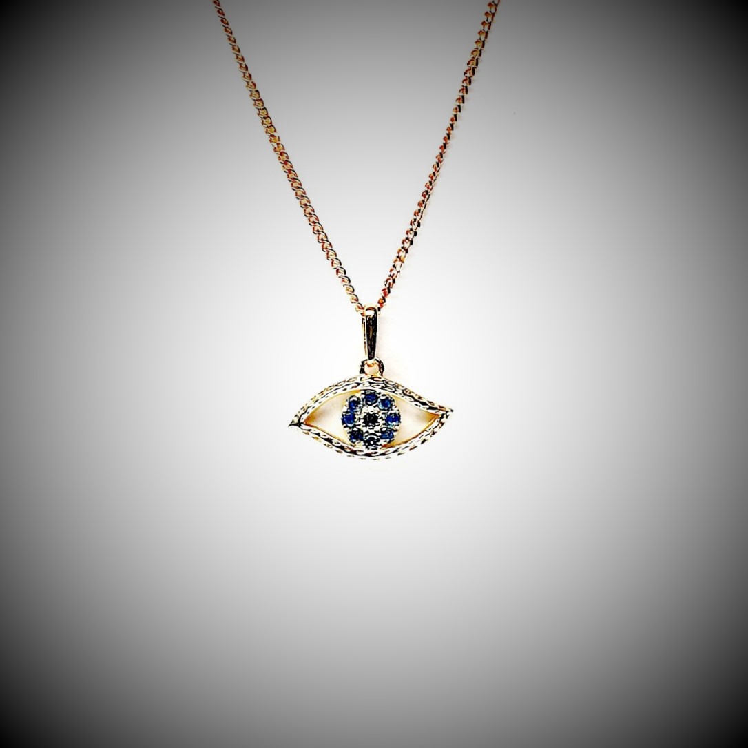 The city of London Jewellers presents the Liverpool Evil Eye Necklace 9ct-Gold CMP0293.