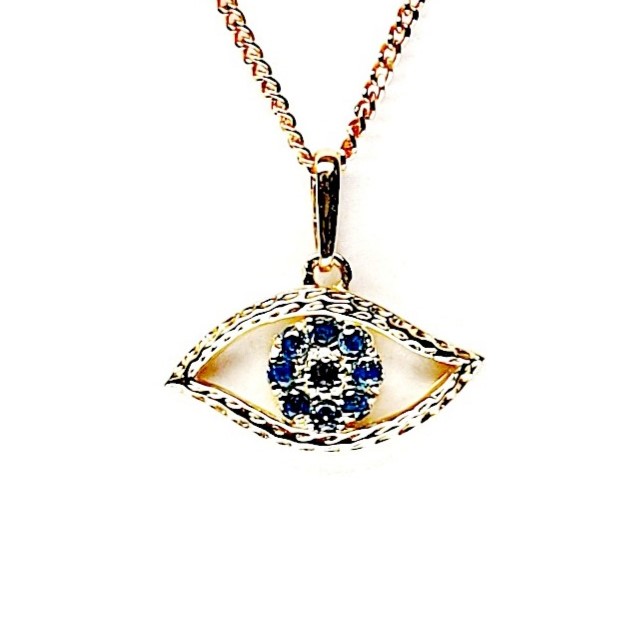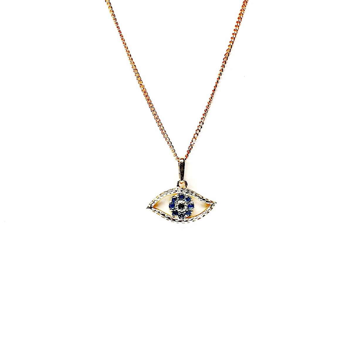 Evil Eye Necklace 9ct-Gold CMP0293. Also known as a Nazar.