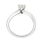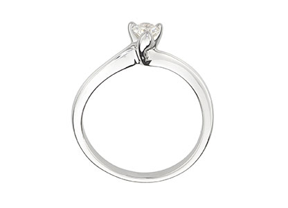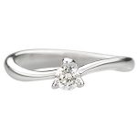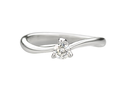 The round, white, brilliant cut diamond in this ring is set in 18ct white gold with three claws, designed to show the sparkling brilliance of the diamond at its best, elegant and sophisticated with soft flowing curved lines.