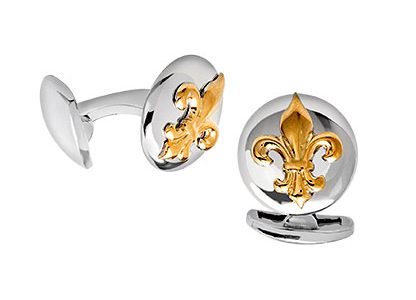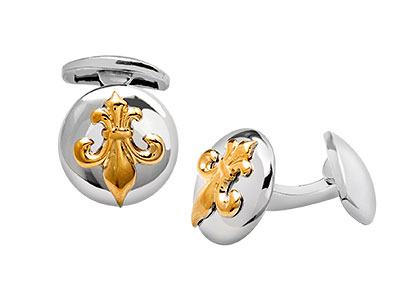 These luxurious, round domed cufflinks are crafted in real silver with a highly polished anti tarnish rhodium finish and overlaid with 18ct yellow gold Vermeil to the Fleur-de-Lis heraldic lily petals.