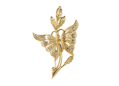 9ct Yellow Gold Butterfly Brooch With Seed Pearls BR00001.
