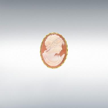 City of London Jewellers presents the Newton BR00008, a gorgeous oval 9ct yellow gold cameo brooch with a fancy twisted wire edge.
