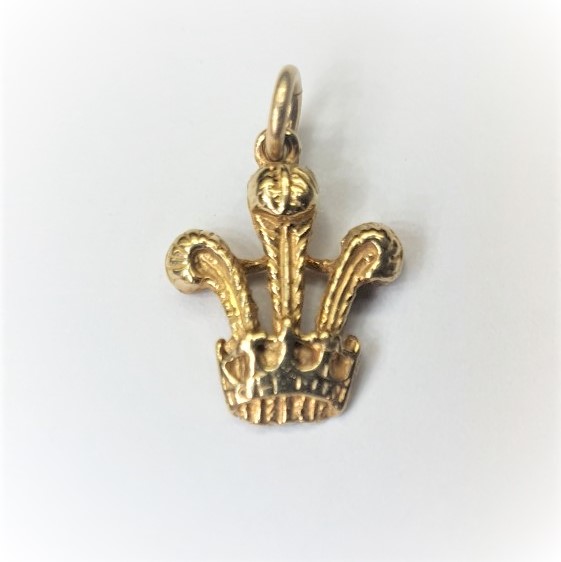 This finely detailed Prince of Wales feather charm is crafted in 9ct yellow gold. A versatile piece that can be worn as a charm or as a pendant.
