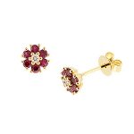 18ct Yellow Gold Ruby and Diamond flower Cluster Stud Earrings.