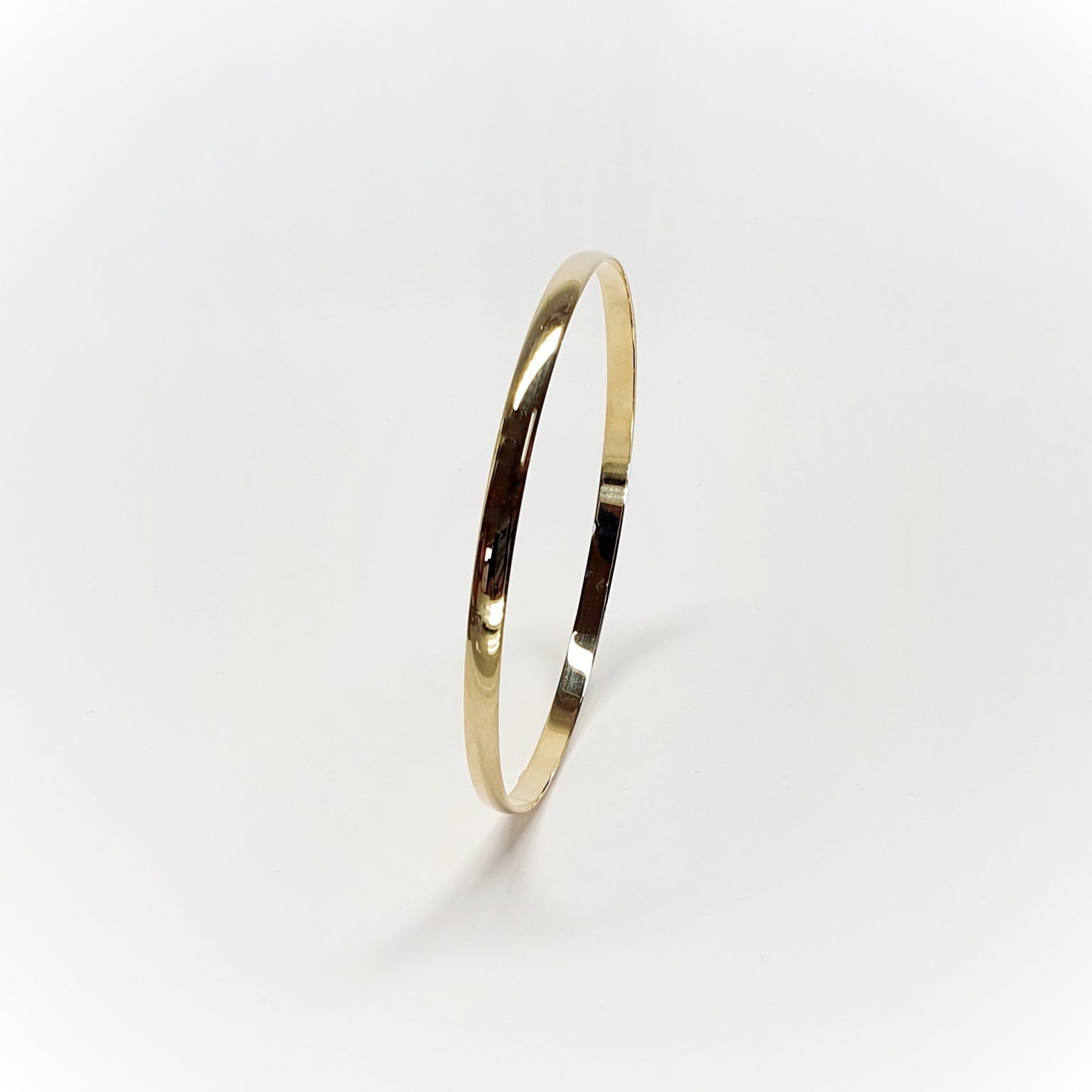 A classic contemporary stacking bangle, crafted in 9ct yellow gold into a polished 4mm D shape section, this lovely bangle look’s great on it’s own, or why not stack it with more of the same or with different patterns widths and shapes of contrasting bangle’s, for that unique custom look that you can swop and change to create different looks every time.