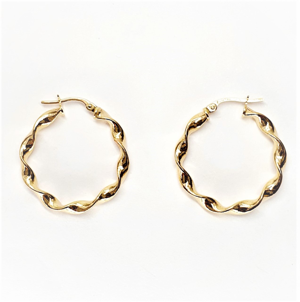 These skilfully crafted 9 carat yellow gold, twisted hoop earrings, are a classic bold design, created to catch the eye.