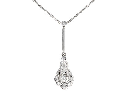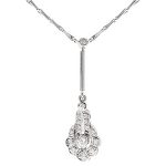 This beautiful art deco style pendant and chain is crafted in 18ct white gold and set with fifteen round brilliant cut diamonds with a combined weight of approximately 0.50cts..