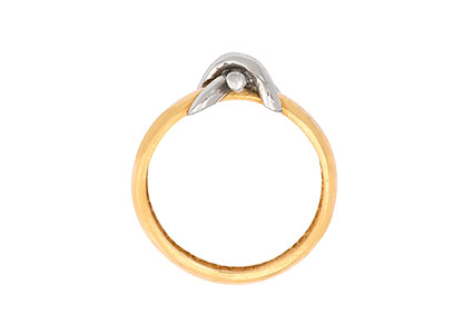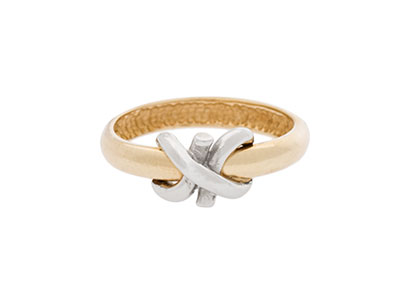 This exquisitely designed gentlemen's ring, features an unusual 9ct white gold knot, tied around a contrasting 9ct yellow gold plain dome shaped band, creating a unique and personal item to be treasured.