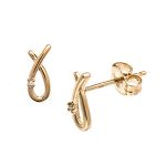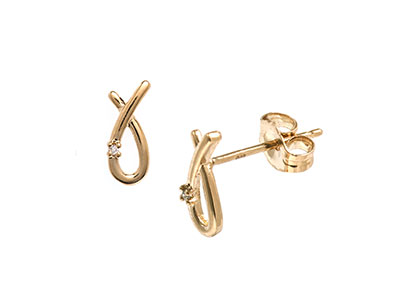 A simple 9ct yellow gold cross over loop stud earring, set with a single round diamond to one side of each earring, giving a dainty and feminine look. Â We are sure these petite earrings will become a long term favourite, perfect for every day wear.