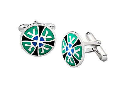 Brighten up your shirt with these unusual kaleidoscope pattern cufflinks, in the shape of two Maltese style crosses and inlaid with turquoise, black and blue cloisonné enamel.