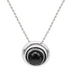 Be noticed with this stylish modern real silver pendant and chain with a bold round cabochon onyx centre. The onyx is slightly raised with a polished rub over setting.