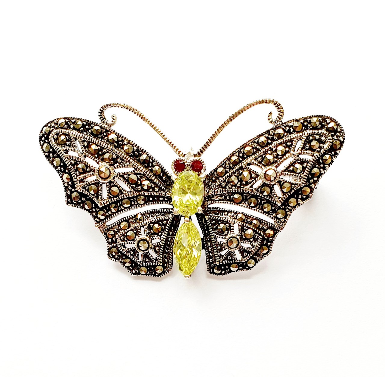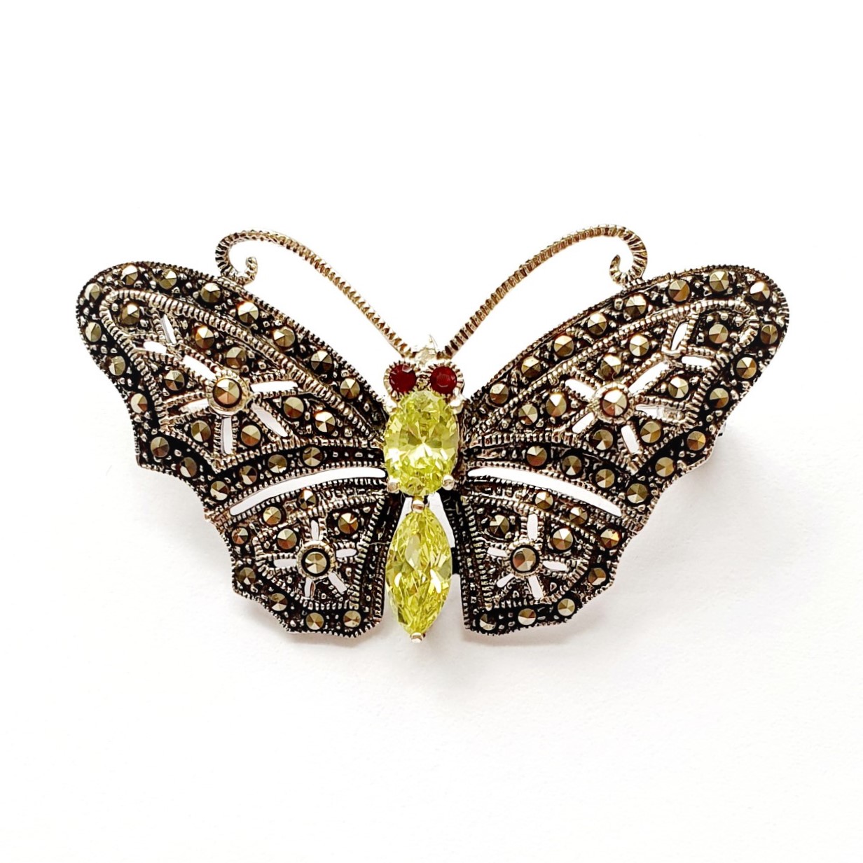 Marcasite Butterfly Brooch Yellow CZ BRS00067.