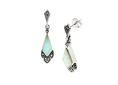 City of London Jewellers present the Wymondham Marcasite & Opalex Drop Earrings.