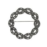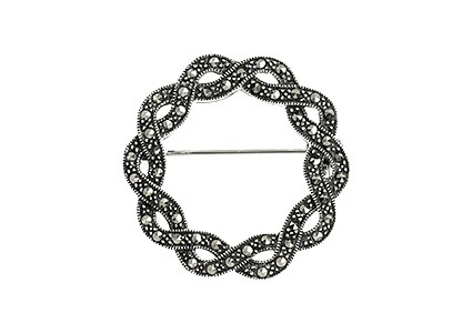 REAL SILVER WOVERN CIRCLE MARCASITE BROOCH BRS00003.