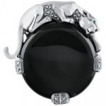 Crafted to the highest standard from the best materials, Set with onyx, marcasite stones and an emerald set in the eye of panther,