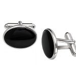 Oval Silver Onyx Cufflinks Real Silver CK00083.