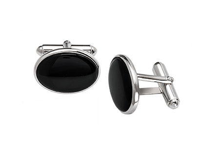 Men’s Sterling Silver Black Oval Cufflinks CCK00405