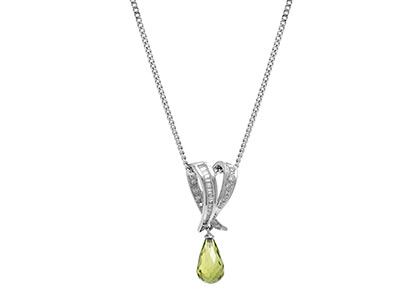 18ct White Gold Diamond and Peridot Pendant with Chain.