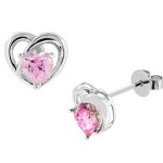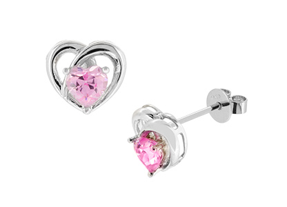 These gorgeous sparkling heart shape pink cubic zirconia are set in an unusual cross over heart shape setting, (two hearts as one). A beautiful eye catching design that inspires adoration from young and old alike.