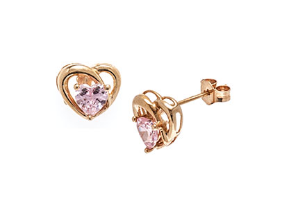 Pink Heart Earring-Studs Gold ES00035.