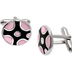 REAL STERLING SILVER ROUNDISH PINK MOTHER OF PEARL CUFFLINKS WITH BLACK ENAMEL.