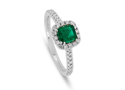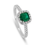 One octagonal step cut emerald 5mm x 4mm approximately 0.48cts – associated qualities, happiness and fertility.