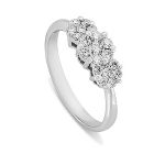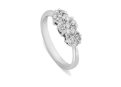 This beautiful platinum diamond three cluster ring has an elegance that makes it extra special. Presented in a beautiful veneered wooden ring box. Please scroll picture to see box.