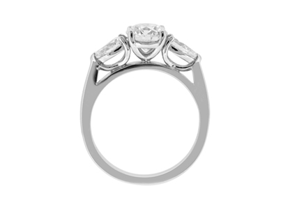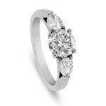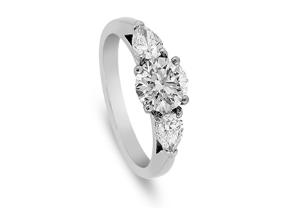 Centre diamond GIA certified 1.01ct colour J, clarity SI2. Two matching pear shaped side stones 0.60ct.