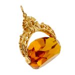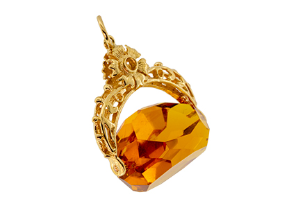 This unusually large swivel pendant fob is made in 9ct yellow gold, with a bewitching vibrant golden citrine stone that spins.