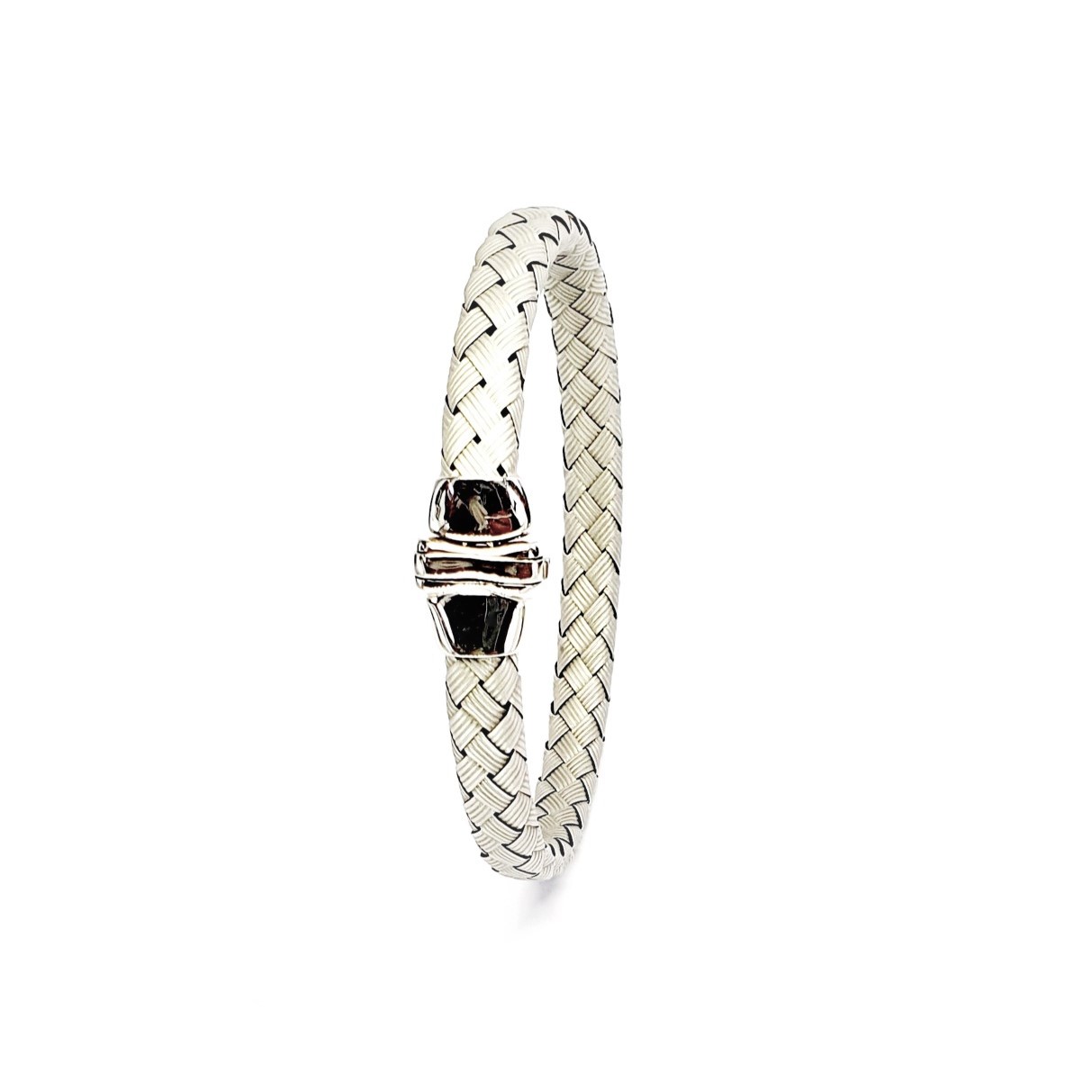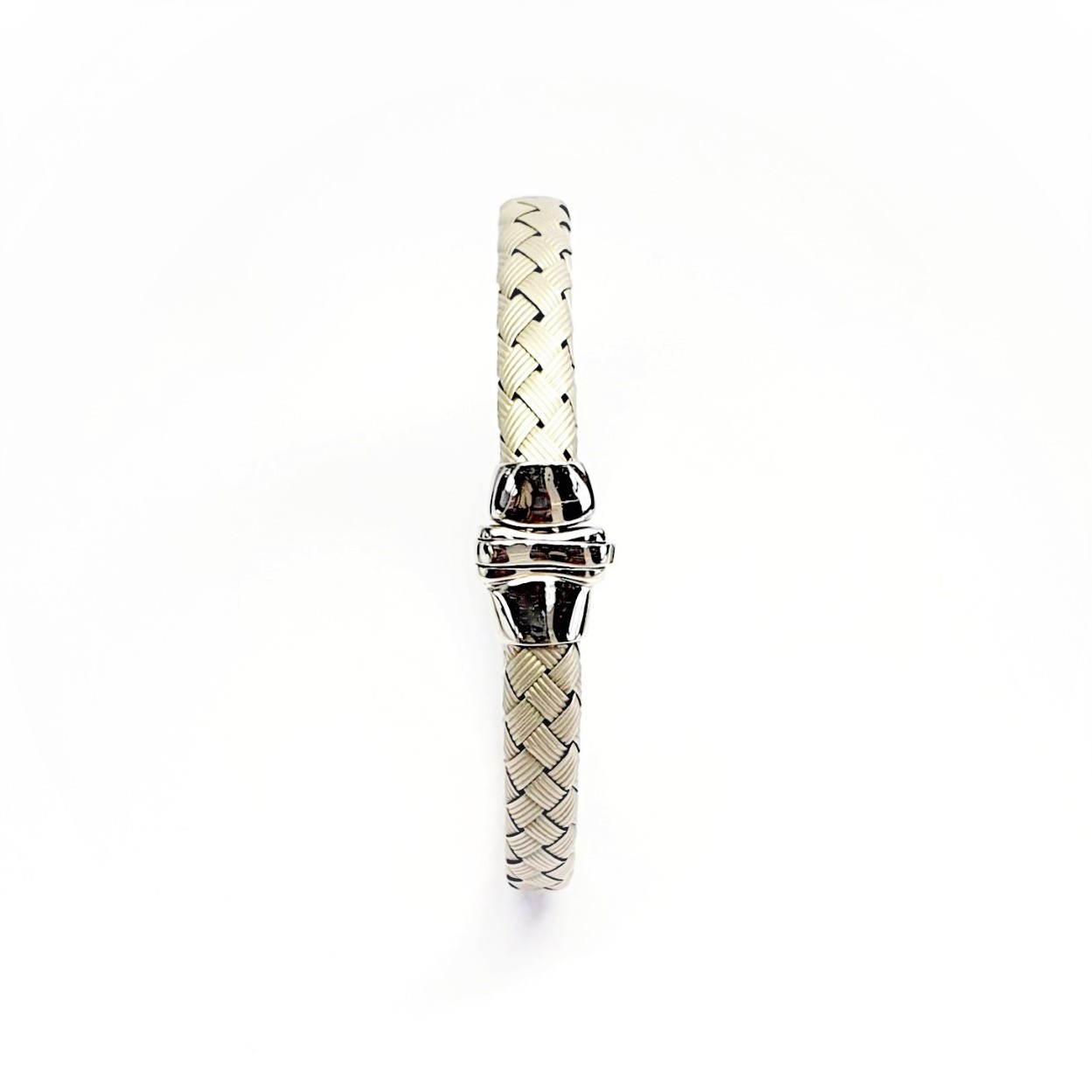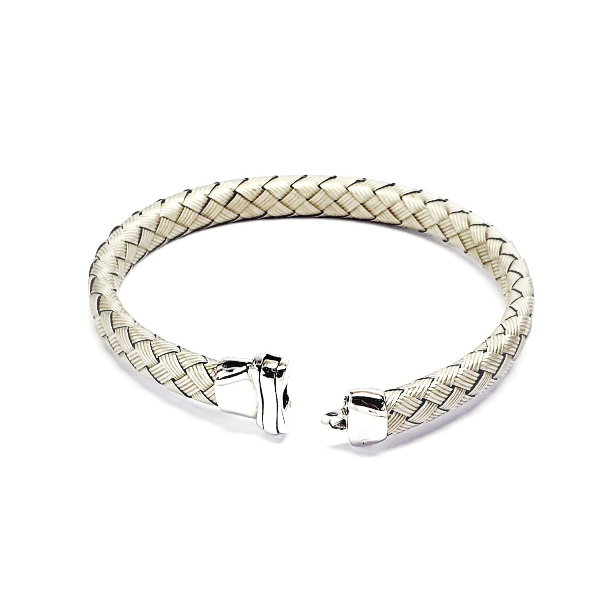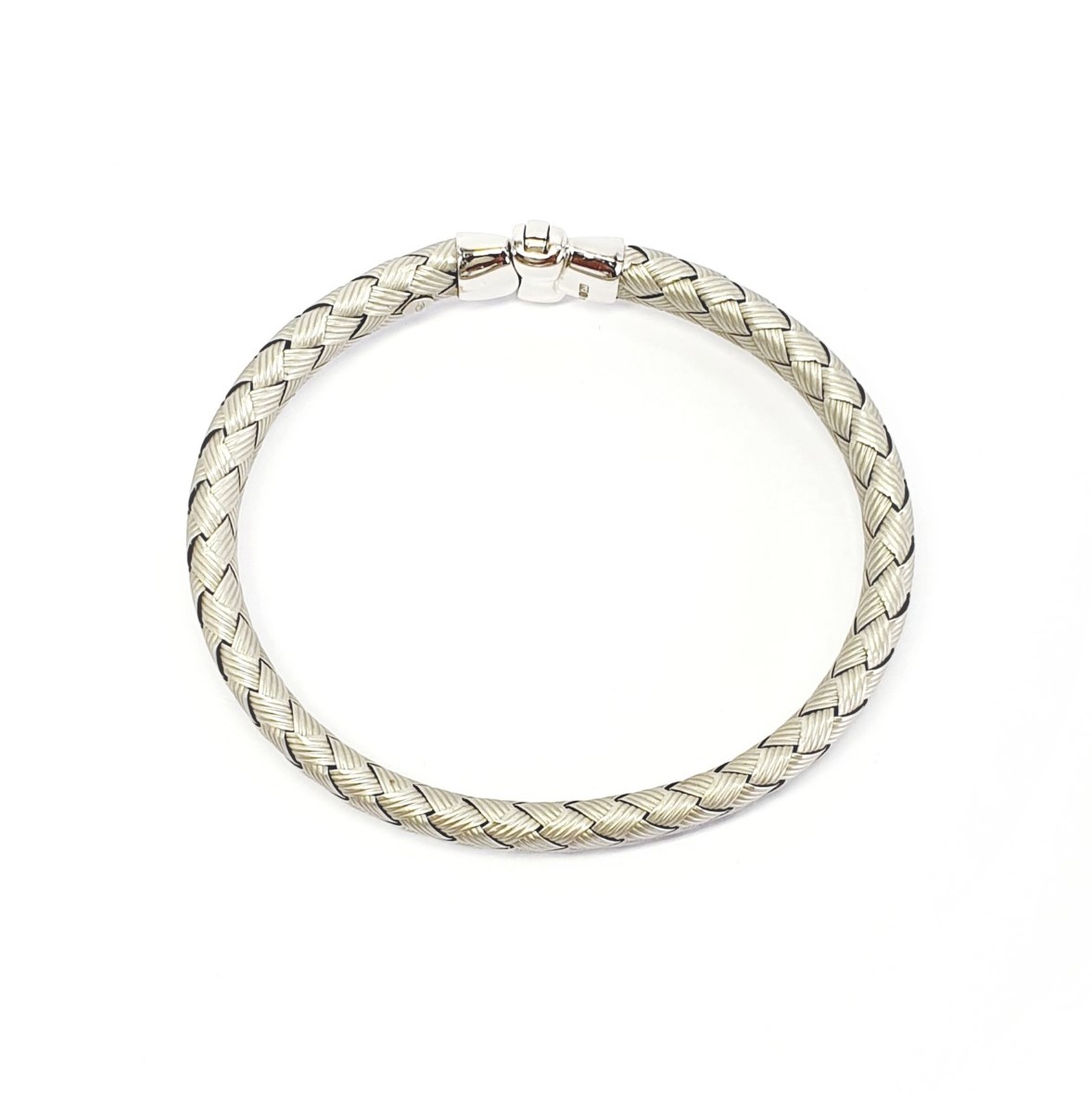 9ct White Gold Bangle Woven With a Matt Finish And a polished Clasp BQ00008.