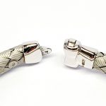 The 9ct white gold body has a Matt grey finish and the connectors are in polished 9ct white gold.