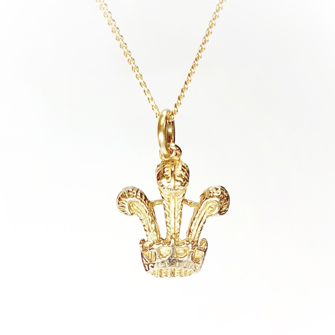 This finely detailed Prince of Wales feathers pendant is crafted in 9ct yellow gold. A versatile piece that can be worn as a pendant or as a charm.