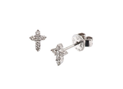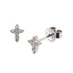 These beautiful classic cross earrings are sculpted in 18ct white gold and set with six round white brilliant cut diamonds in each cross.