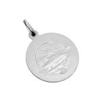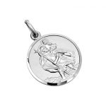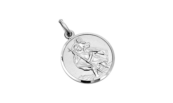 This lovely round saint Christopher pendant is made in Italy. The front has a matt finish with a contrasting plain diamond cutting around the border to give a smart crisp polished finish to the edge of the pendant.