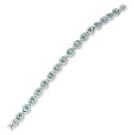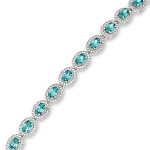 This gorgeous classic style, oval cluster bracelet from the Bonita Jewels collection, is sure to turn heads with admiring glances. Crafted from real silver into sixteen oval shaped clusters, set with sparkling white and light blue aquamarine colour cubic Zirconia’s. Each cluster is linked for a free flowing movement.