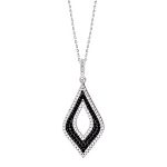 An outstanding pendant from the Bonita Jewels collection, set with fifty-nine black cubic zirconia’s encased with eighty-five round glistening, brilliant cut white cubic zirconia’s of the finest quality, creating the perfect contrast and the look of real black and white diamonds.