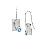 These stylish modern 925 real silver earrings have a frosted matt background, overlaid with a contrasting high polished wire, following on from the hook ear wire across the earring to a beautiful oval sky blue topaz stone, in a secure rub over setting. These outstanding earrings are made to the highest standard with an anti tarnish rhodium finish , using the finest materials and jewellery making skills, to create a unique and personal item to be treasured.
