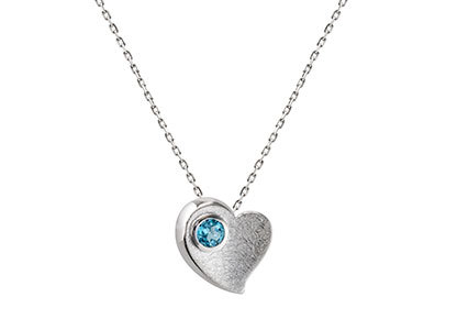 Be noticed with this beautiful modern real silver heart pendant and 16inch chain, crafted with a gorgeous round blue topaz in a secure rub over setting . This pendant has highly polished side edges, with a contrasting slightly concave matt finish top, all with an anti-tarnish rhodium finish.