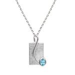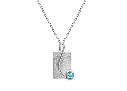 A stylish modern 925 real silver pendant with a frosted matt background, overlaid with a contrasting high polished wire that branches across to a beautiful oval sky blue topaz stone, in a secure rub over setting.